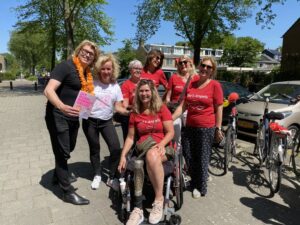 Vorige maand stapte Evelien, die zelf twee keer borstkanker heeft gehad, op de fiets om in zes weken tijd de 75 IPSO inloophuizen, verspreid door heel Nederland te bezoeken om op deze manier aandacht te vragen voor het bestaan van het Inloophuis. Ilse Moerkerk, ambassadeur en vaste gast van het huis, haalde samen met haar ‘angels’ Evelien op bij het Pontje Buitenhuizen. Ilse verloor haar been aan botkanker en wilde graag een lokale bijdrage leveren aan deze geweldige ludieke ‘Huis in actie’. Samen fietsten ze richting Santpoort, Ilse met haar handbike en Evelien met haar gesponsorde Stella e-bike.